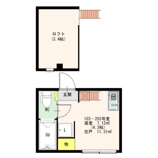 天井高敷金・礼金0の大型ロフトは居室の他、収納や居室としてご利用いただけます。